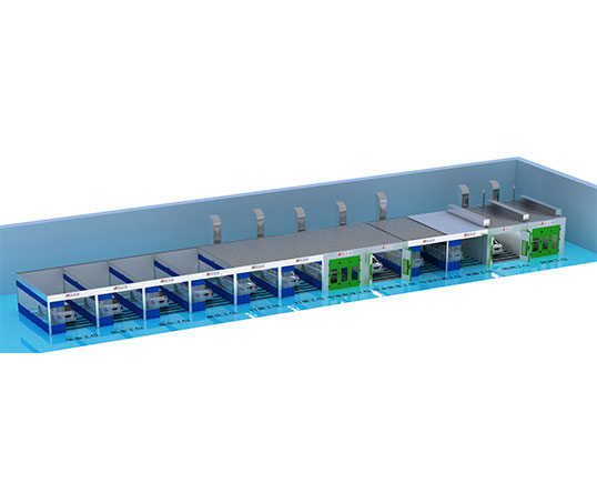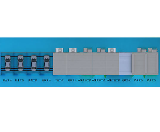整條鈑噴流水線配52臺移動小車和6條*44.9米/條=269.4米軌道;